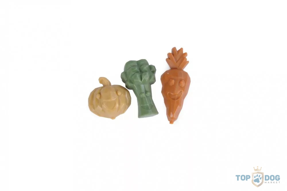 ÖSSZETÉTEL: Édesburgonya, borsóliszt, növényi glicerin, szárított brokkoli 4% (zöld csemege), szárított sárgarépa 4% (narancs csemege), szárított tök 4% (sárga csemege),