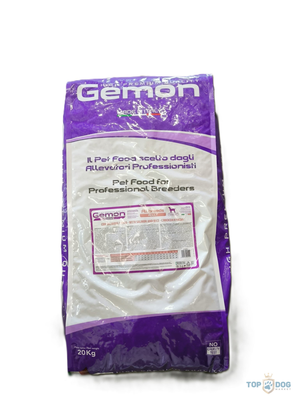 ÖSSZETÉTEL: Gabonafélék (rizs 5%), hal és halszármazékok (friss lazac 8%), hús és állati származékok 24%, olajok és zsírok (lazacolaj 3%), növényi eredetű származékok (répapép 2%, frukto-oligoszacharidok – FOS 1% és yucca schidigera 0,1%), élesztők (inaktivált sörélesztő 1%), ásványi anyagok, puhatestűek és rákfélék (glükózamin 0,057%).
