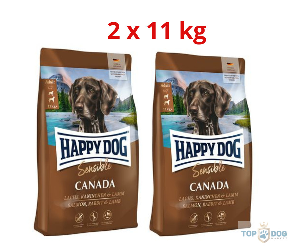 A Happy Dog Canada eledelt kifejezetten a kissé magasabb energiaszükségletű aktív felnőtt kutyák számára fejlesztettük ki. Ideális érzékeny fiatal kutyák számára is 6 hónapos kortól. A Canada rendkívül ízletes teljes értékű szuper prémium eledel, amely finom lazacból, ízletes nyúl- és bárányhúsból, valamint gluténmentes burgonyából készül. Ezt a különleges receptet az egyedülálló Happy Dog Natural Life Concept természetes összetevői teszik teljessé. Rendkívül ízletes.