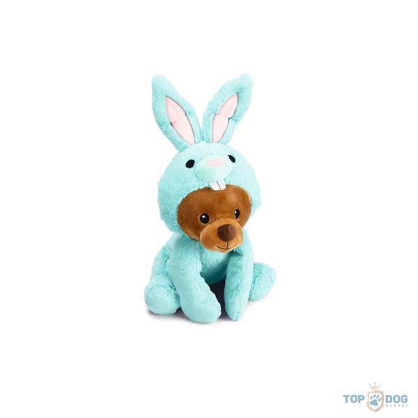 Húsvéti kutyajáték plüss nyúljelmezes maci 38 cm