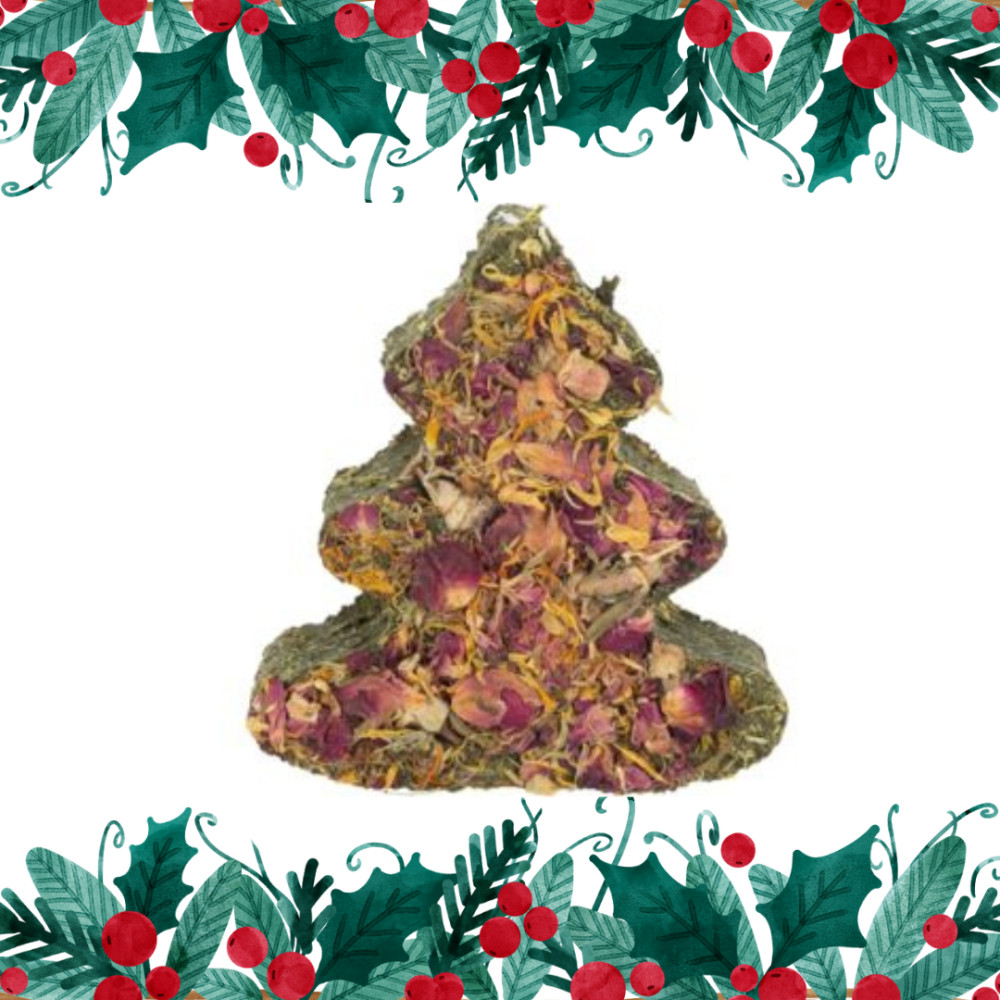 Ez az illatos, természetes mezei füvekből készült karácsonyfadísz színes virágszirmokkal és zamatos gyümölcsdarabokkal van díszítve, így nemcsak szórakoztató, de ízletes csemege is kisállatok számára. Tökéletes választás nyulaknak, tengerimalacoknak és más növényevő kisállatoknak.A csomagolás különlegessége, hogy a kártyája egyben üdvözlőlapként is szolgál – ráírhatod a kisállatod nevét és a „Mikulás segítőjének” nevét is, így igazán személyes és emlékezetes ajándék válik belőle