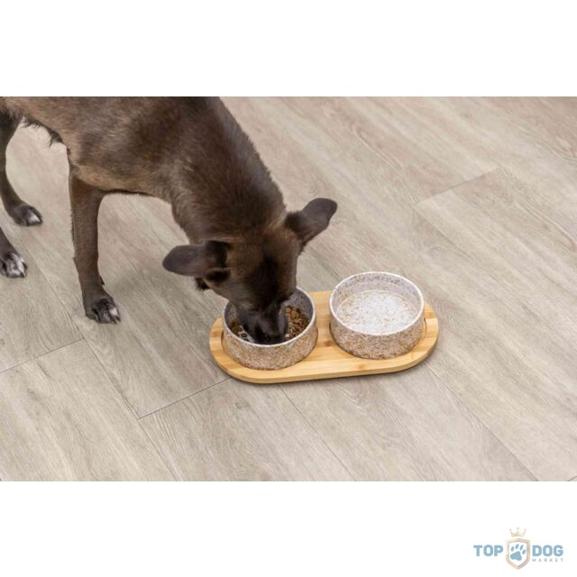 Kerámia tál bambusz fa tartóval 2*0,8L TRX 24829