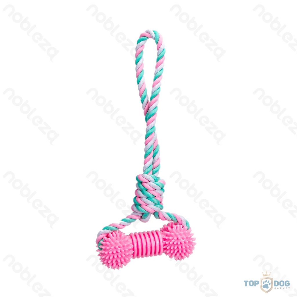 Kötélből készült kutyajáték TPR csont alakú játékkal 33cm NB Rózsaszín