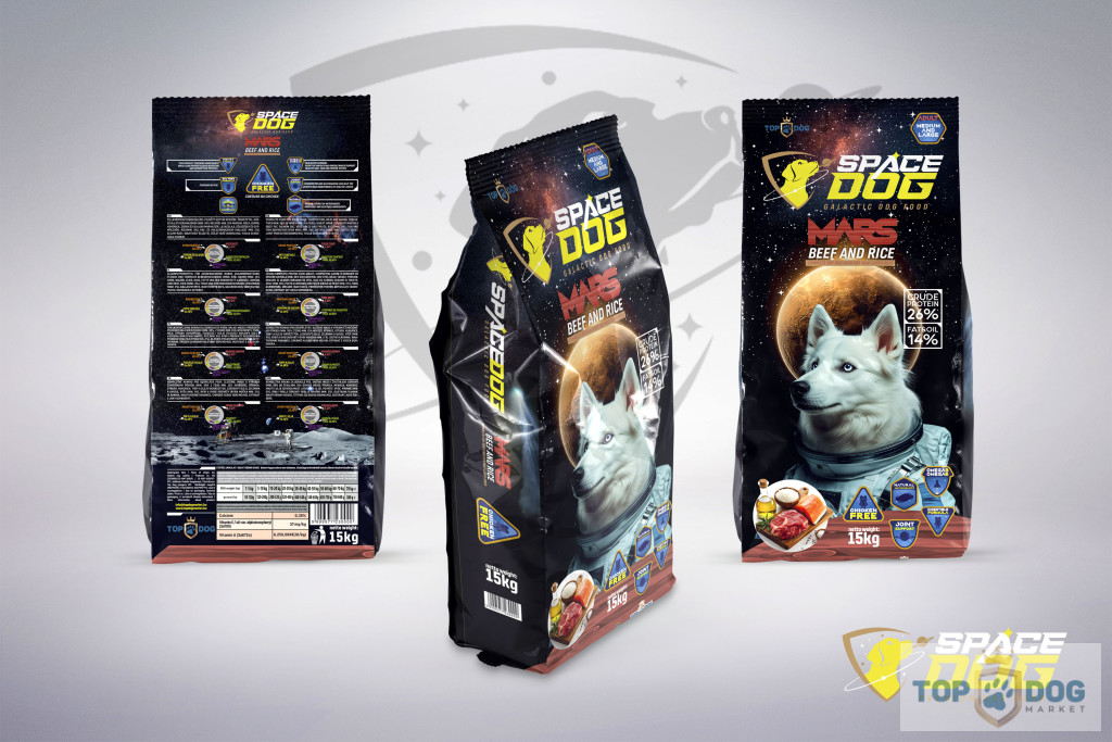 Minden Space Dog táp az univerzumban található bolygóról kapta a nevét, melyek segítenek könnyen megjegyezni és azonosítani a termékeket. A csomagolás egyedi galaxis dizájnnal készül, hogy már első pillantásra megkülönböztethető legyen és magával ragadja a figyelmet.