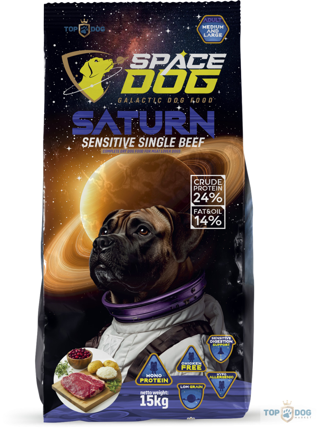 Miért válaszd a Space Dog Saturn Sensitive Single Beef Low Grain 15 kg-os száraztápot?
