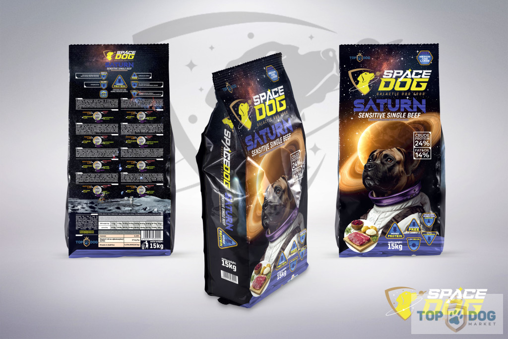 Minden Space Dog táp az univerzumban található bolygóról kapta a nevét, melyek segítenek könnyen megjegyezni és azonosítani a termékeket. A csomagolás egyedi galaxis dizájnnal készül, hogy már első pillantásra megkülönböztethető legyen és magával ragadja a figyelmet.