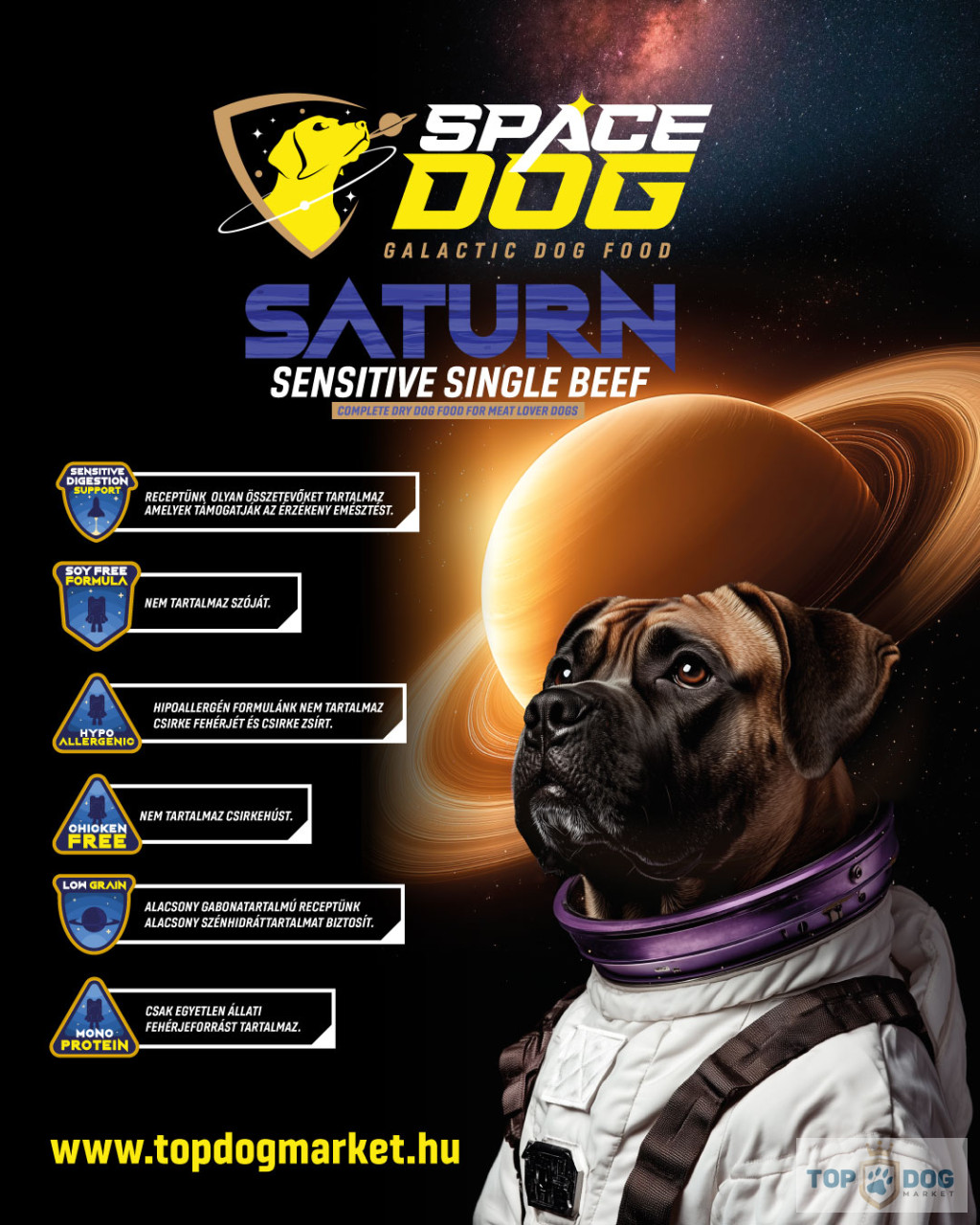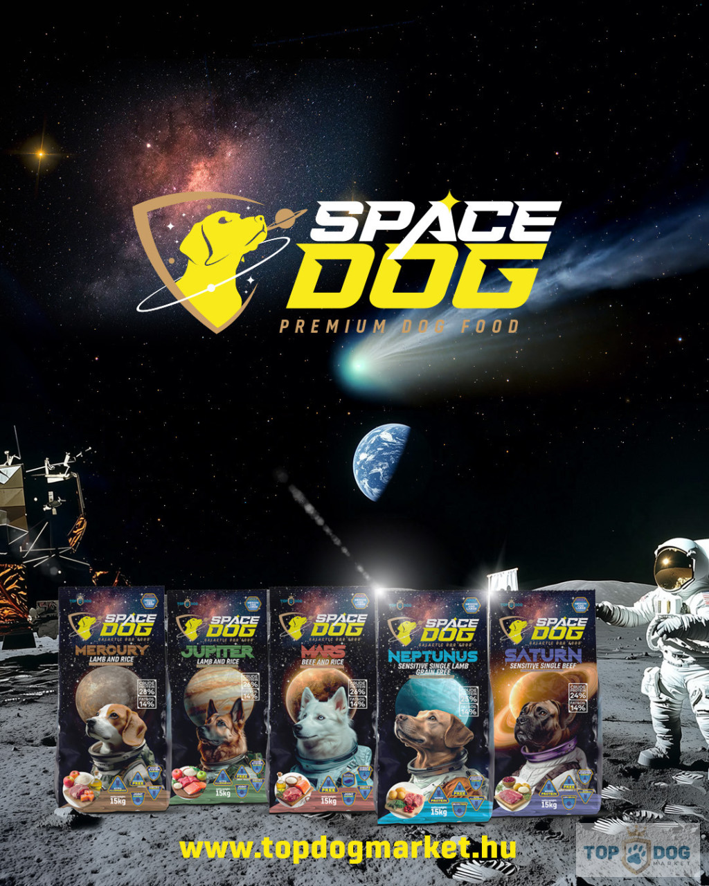 Space Dog: Több mint táplálék – ez egy új életforma a kutyád számára. Fedezd fel a bolygók közötti különbségeket, és válaszd a kedvenced számára legideálisabb változatot!