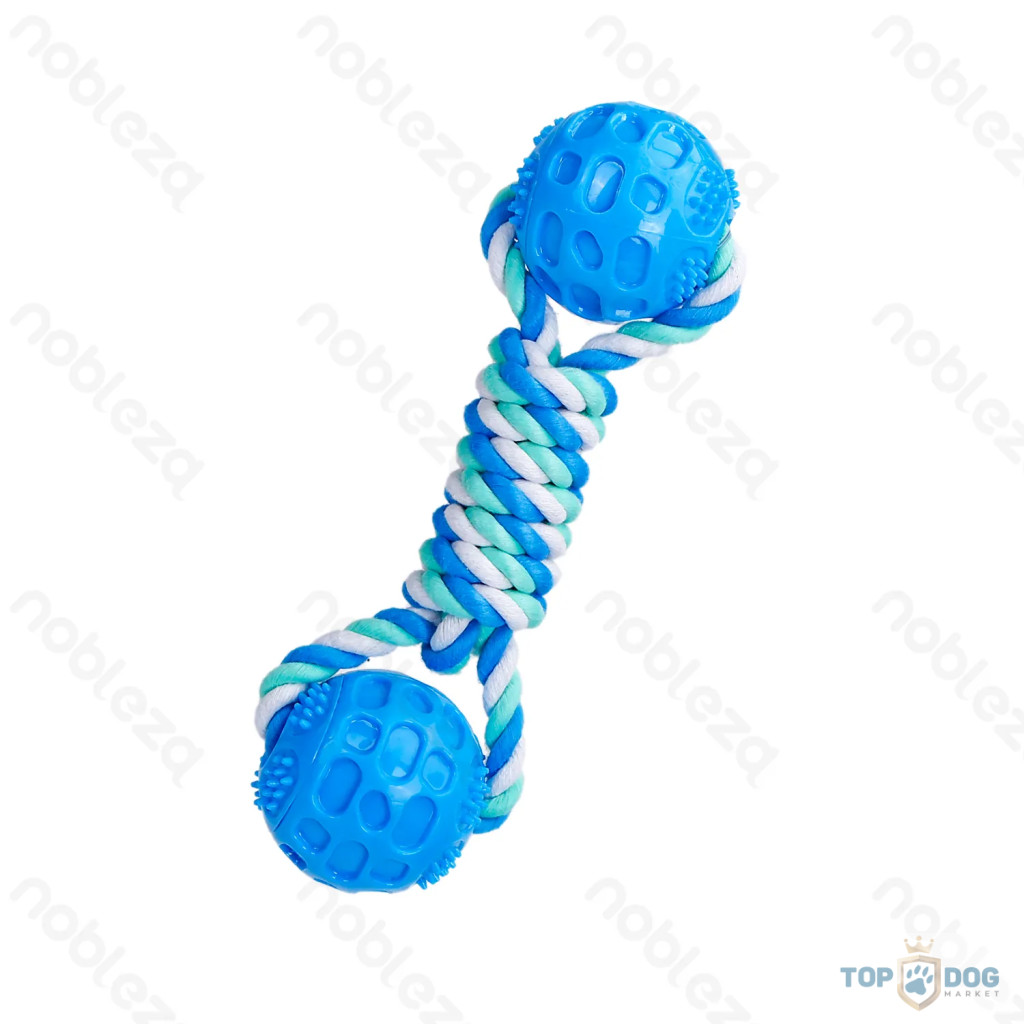 Kötélből készült kutyajáték TPR dupla labdával 23*6cm NB Kék